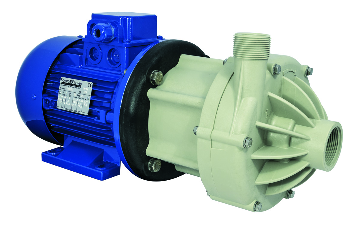 A couple of magnets leads the operation of the pump; the outer magnet placed on the drive shaft transmits the motion to the inner magnet integrated with the impeller that is hermetically insulated. The pump impeller is not physically fixed to the drive shaft, seals are therefore eliminated and this consequently avoids leakages of the liquid drawn by the pump which are usually due to its wear and tear. The pump head is manufactured with few components, thus the maintenance of which becomes extremely easy. The materials used as standard are polypropylene (pp) and polyvinylidene fluoride (pvdf).